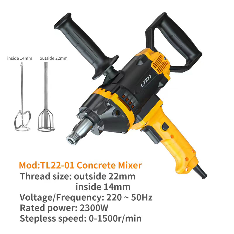 Este mezclador de pintura y mortero Litai es el último taladro mezclador multifuncional actualizado de nuestra fábrica. El fuselaje tiene un diseño estructural preciso, engranajes hechos de acero al carbono de grado industrial de alta precisión, cojinetes de alta relación de rotación, alta velocidad, baja fricción y bajo ruido. El motor totalmente de cobre tiene gran potencia y puede agitarse rápidamente sin grumos. Con el interruptor de velocidad continuo, puede usar fácilmente el mezclador de pintura y mortero para mezclar varios tipos de masilla en polvo, cal en polvo, concreto, pintura, revestimiento y otros materiales.